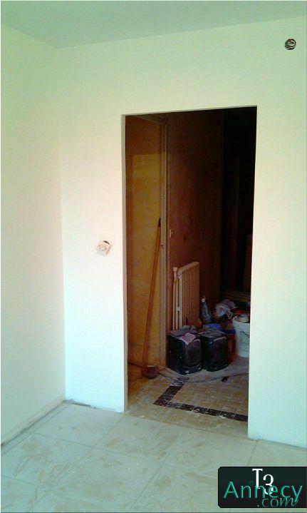 Une fois ma cloison rallongée, mes encadrements refait à neuf et rabaissée, un coup d'enduit de lissage, sous-couche, et peinture.