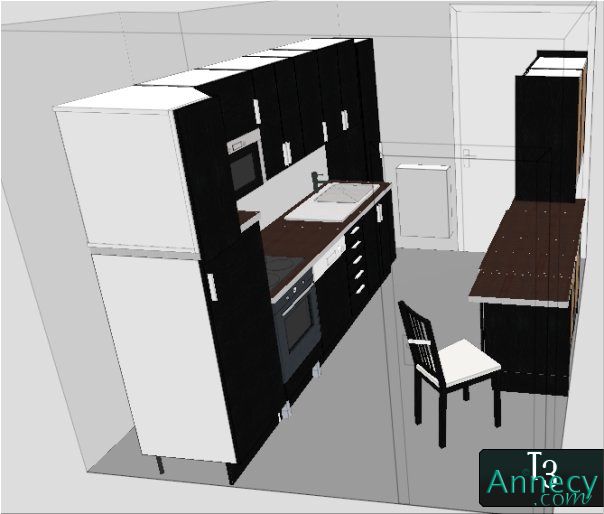 Ce premier 3d fait par mes soins est vraiment pas terrible, puisque la cuisine est toute droite, alors que la pièce est allongée.