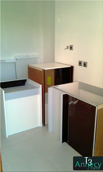 Un petit montage à blanc avant de mettre les pieds, de fixer les meubles entre eux, et de poser le plan de travail.