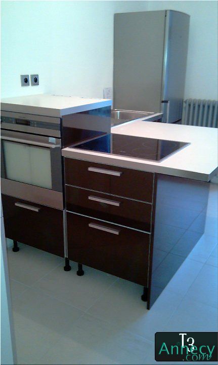Positionnement du four à vapeur, de la table induction, avant fixation définitive.