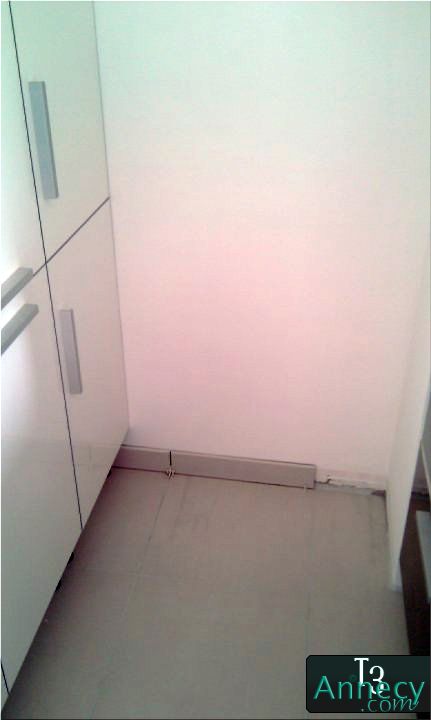 Ne pas oublier de laisser une hauteur de joint entre le dessous de la plinthe et le carrelage au sol. Cela évitera l'infiltration d'eau.