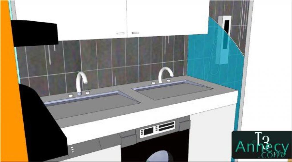 Plus tard je me rendrai compte qu'un plan de travail aussi profond avec des lavabo intégré n'existe pas, et que sur mesure, le coût de revient est exorbitant !