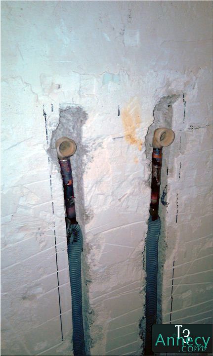 Les saignées qui permettent aux tuyaux d'arrivé d'eau d'aller jusqu'à la colonne de douche.