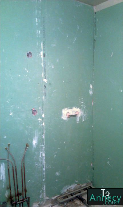 Si vous suivez les photos dans l'ordre et lisez les commentaires, vous aurez remarqué que j'ai annoncé 10fois que j'allais coller la plaque de placo... Bon bhen voilà, c'est chose faite ^^