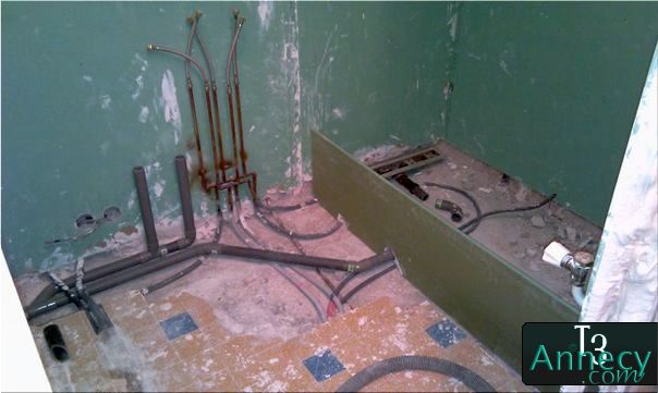 Avant de mettre mon bloc de béton cellulaire qui accueillera la paroi vitrée, il me faut reboucher le sol de la salle de bain (pas celui de la douche)