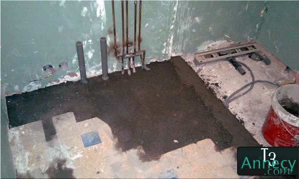 On attend que ça sèche. Plus tard, je mettrai un mortier de finition (réagréage) pour lisser le sol parfaitement (ou presque, vu que c'est la première fois que je vais faire ça...)