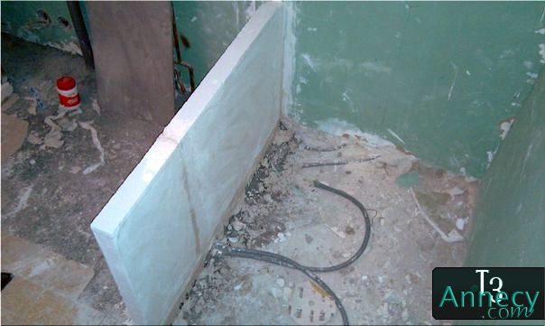 Il faudra ensuite couler la pente de la douche avec du béton.