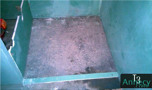 Toujours, utilisation des chutes pour délimiter le plat de la douche.