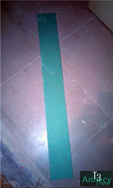 Après avoir coupé 4 bandes de Ba13 comme celles-ci, je les ai collé, l'une sur l'autre pour rabaissé le passage de porte de 10cm.