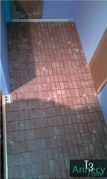 Ca a l'air compliqué expliqué comme ça, mais en fait, je pose la mosaïque, je mesure, je centre, et c'est tout... J'aurai pu juste dire ça aussi...