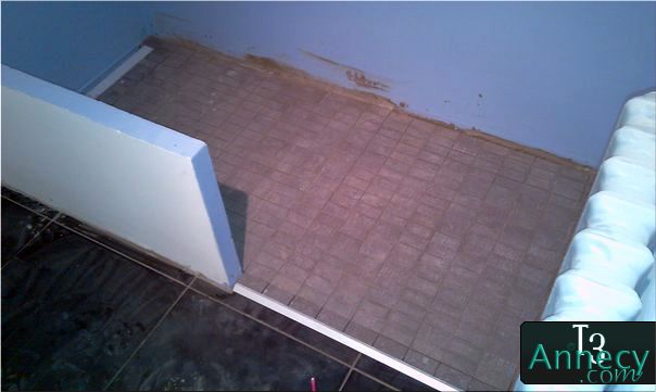 Je suis entrain de regarder comment je fixe le seuil de passage de la douche, si j'incline la mosaïque et de combien de degrés... pour éviter que l'eau ne sorte de la douche