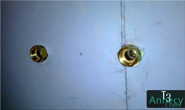Et voilà, mes arrivées d'eau de la colonne de douche sont décalées d'un cm par rapport à mon mur d'origine, justement, l'épaisseur de la faïence avec la colle :)
