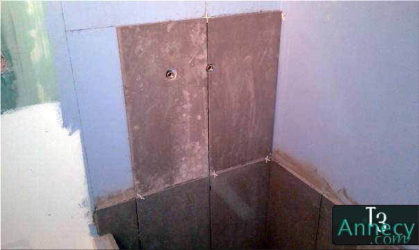 Montage blanc faïence derrière colonne de douche