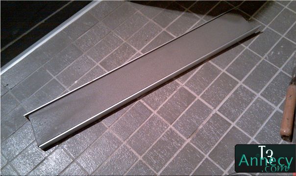 Pour vous montrer à quoi ressemble ce rebord démonté avec les baguettes de finition en aluminium, voir photo suivante.