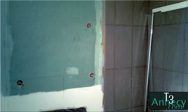 Ce week-end je commence par vous mettre les photos de la faïence Villeroy Boch blanche laquée, je nettoie le mur, puis je colle (voir photos suivantes)