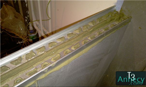 Les baguettes aluminium sont juste posée au mieux de leur position finale, mais seront vraiment en place une fois les carreaux mis entre.