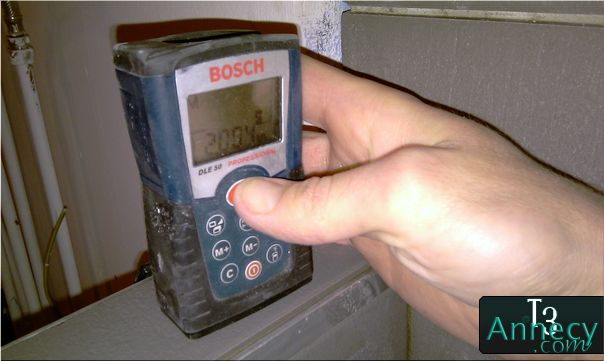Ensuite je prends l'autre côté du mur, et je contrôle, j'ai 2 millimètres de différence, mais vu que l'huisserie est plus longue que la vitre d'un millimètre, ça ne se verra pas, et c'est même parfait !