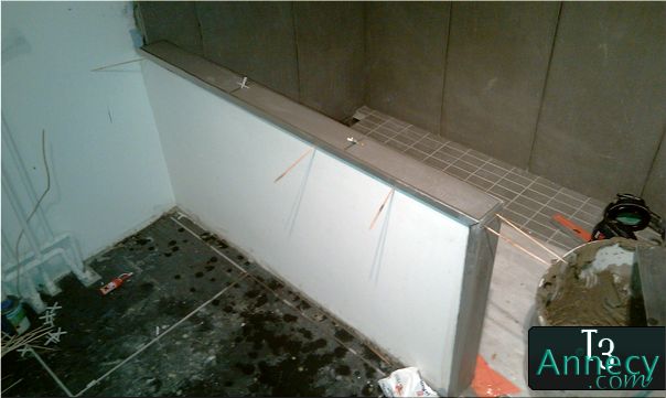 J'en profite pour vous préciser que les carreaux on été légèrement inclinés, pour que l'eau puisse couler côté douche (logique :p )
