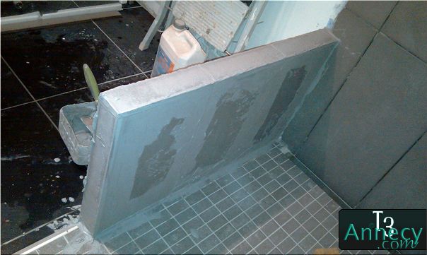 Voilà le joint de la faïence, toujours hydrofuge avec l'additif.