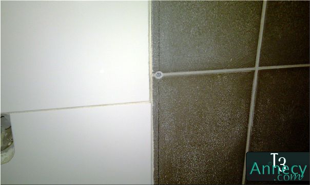Les 2 premiers trous je les ai fait sur le bord des carreaux, et étant donné qu'ils ont cassé. J'ai préféré faire les autres trous entre les carreaux (sur les joints).