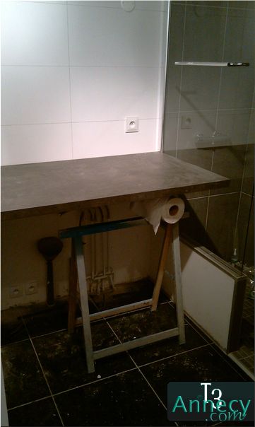 Vue du plan de travail de la salle de bains