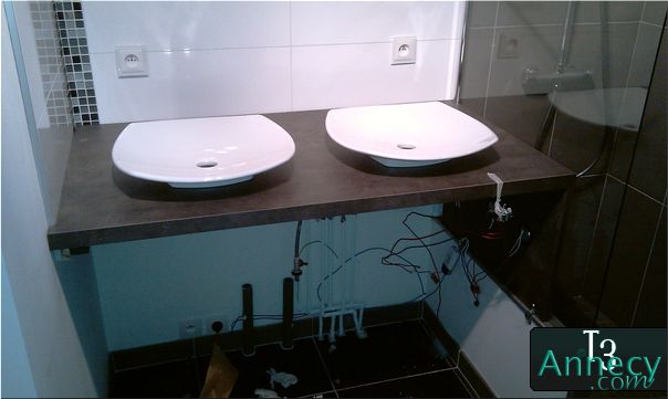 Les nouveaux vasques plats sont rapidement collées sur le plan de travail