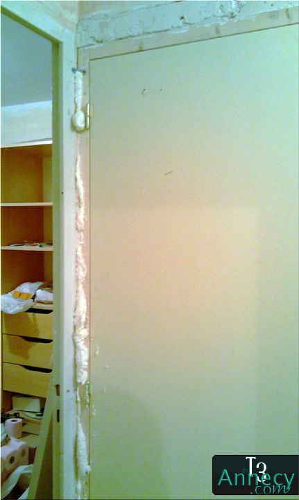 Pour sceller définitivement l'encadrement gauche de la porte plaqué contre le mur.