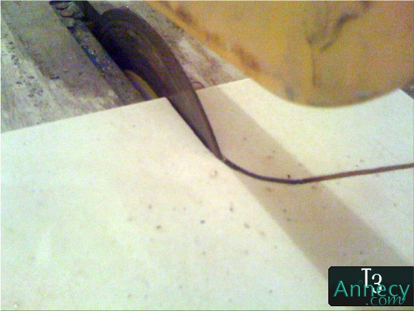 Disqueuse à l'eau. Attention, j'ai rajouté des câbles à la terre qui plongeaient directement dans l'eau du bac pour éviter tout problème d'électrisation ou électrocution.