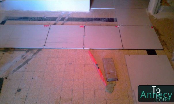 Une fois la première ligne de carreaux pleins mise en place (faire attention aux motifs sur les carreaux)