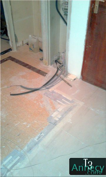 Ne posant pas tout le carrelage d'un coup, puisque attendant le coulage de la chape dans le salon, je protège les carreaux déjà collé avec des épaisseurs de cartons collé au scotch sur leurs bord pour éviter les éclatements.