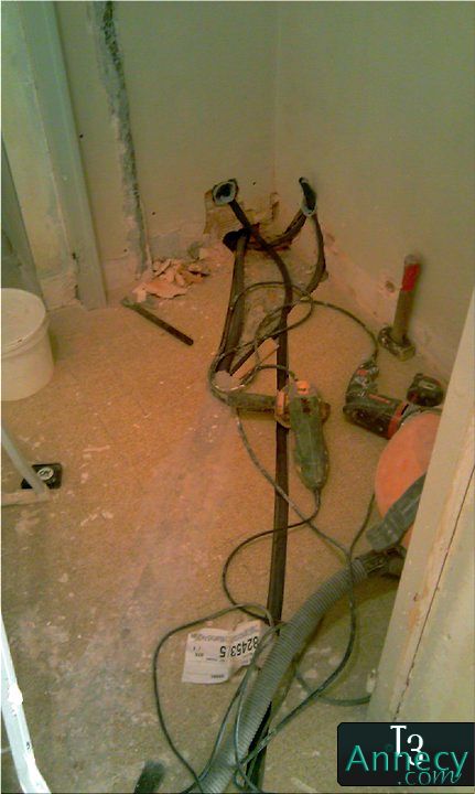 Je fais venir le nouveau circuit électrique du bureau, puis la salle de bain, et même une prise dans le placard.