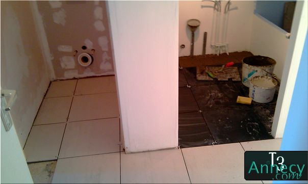 J'en profite pour faire le carrelage de la salle de bains aussi.