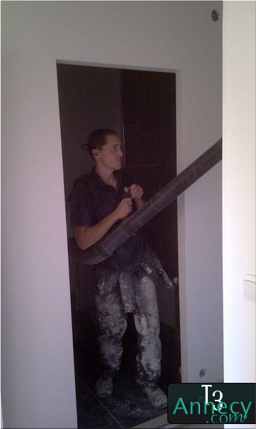 J'expulse toute la poussière à l'extérieur de l'appartement