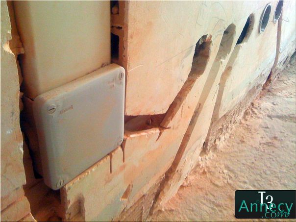 Petite saignée entre le conduit de câble et la prise télévision pour un branchement direct sur la télévision.