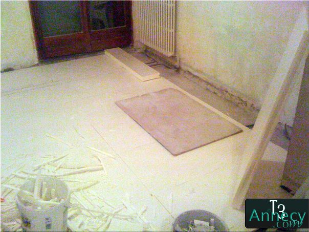 Toujours la planche en bois pour me mettre à genoux dessus pour enclencher la plaque de roofmat
