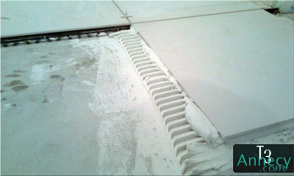 Joint de dilatation, collage du carrelage